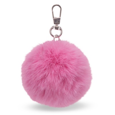 Puha, 7 cm átmérőjű rózsaszín műszőr pompon. Kulcstartóként, vagy táskadíszként használható. Az akasztó kb. 3,5–4 cm hosszú fémláncból és karabinerből áll, amely megkönnyíti a rögzítést.