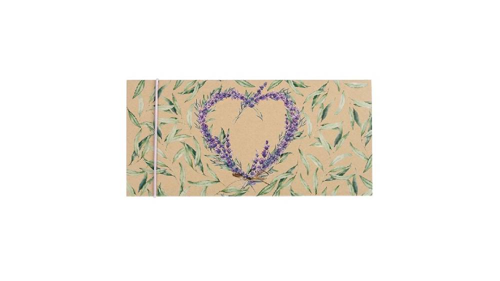 Artebene ajándékutalvány tartó (23x11 cm) kraft, levendula szíves