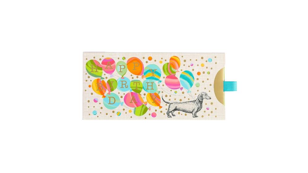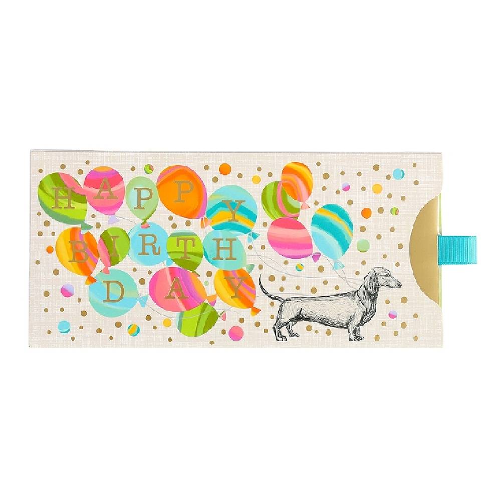 Artebene ajándékutalvány tartó (23x11 cm) tacskós, színes lufis