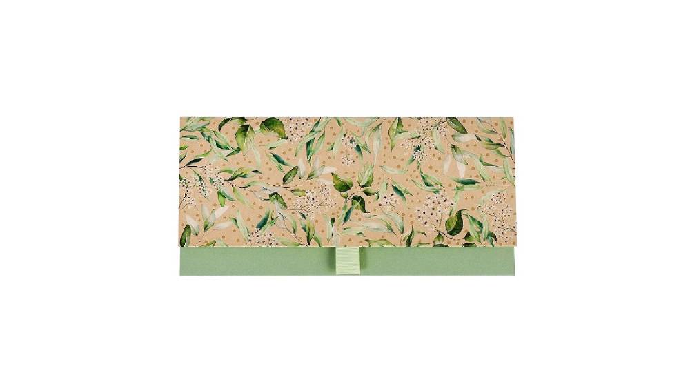 Artebene ajándékutalvány tartó (23x11 cm) zöld, levélmintás