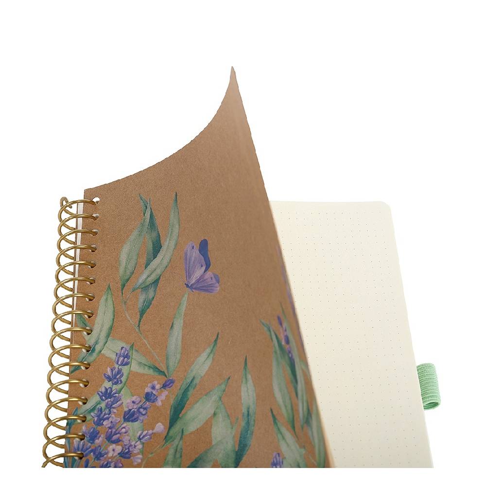 A részletesen kidolgozott levendulaágakkal és egy pillangóval díszített, masszív kraft papír borító harmonikus megjelenést kölcsönöz.
