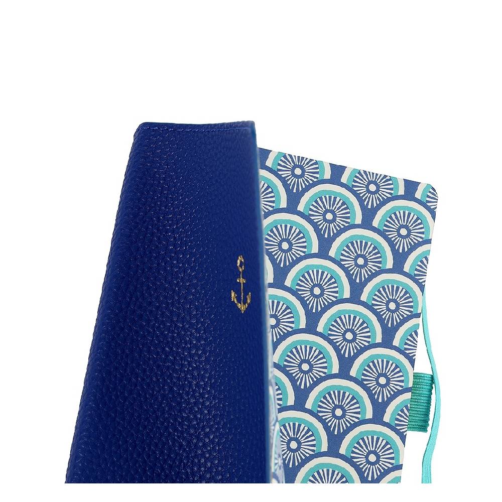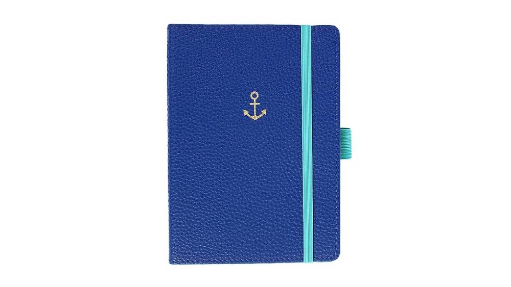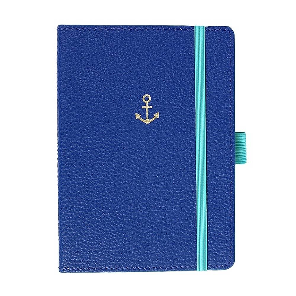 Ez az elegáns királykék színű notesz a kreatív mintájú, arany dombornyomott horgony díszítésével és a türkizkék rugalmas szalaggal egyszerre funkcionális és látványos.