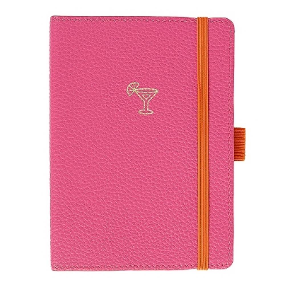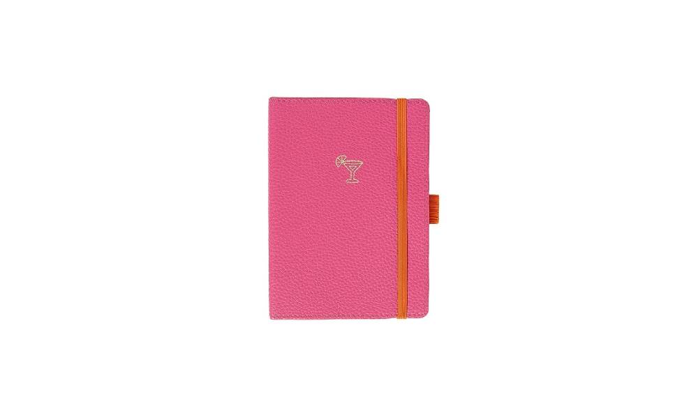 - Ez a pink színű notesz friss és kreatív mintájú, arany koktél pohár díszítésével, élénk narancs színű gumipántjával egyszerre funkcionális és látványos