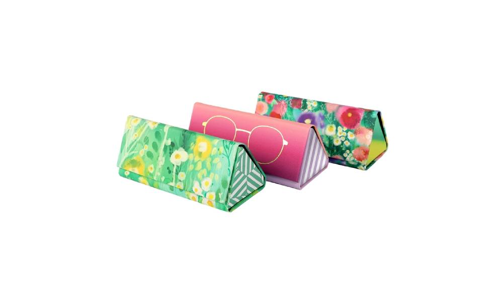Artebene szemüvegtok, háromszög alakú, színes, tavaszi minták, 3-féle