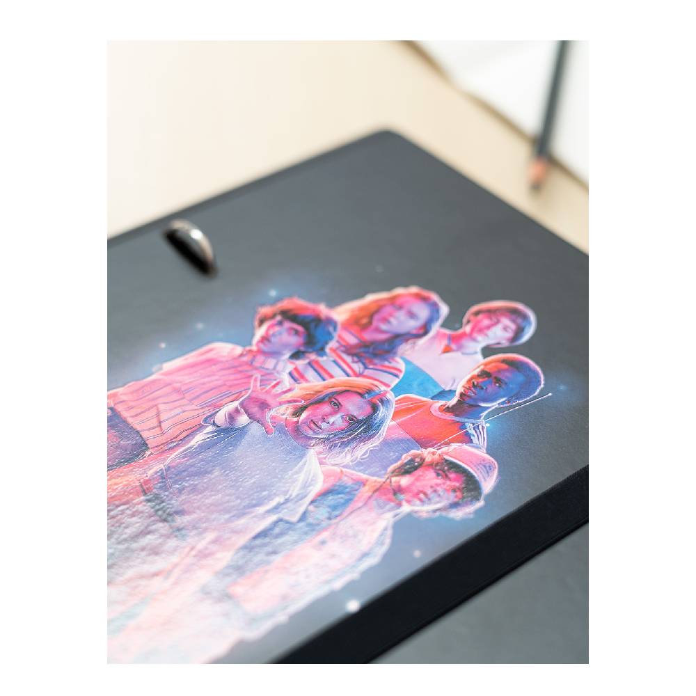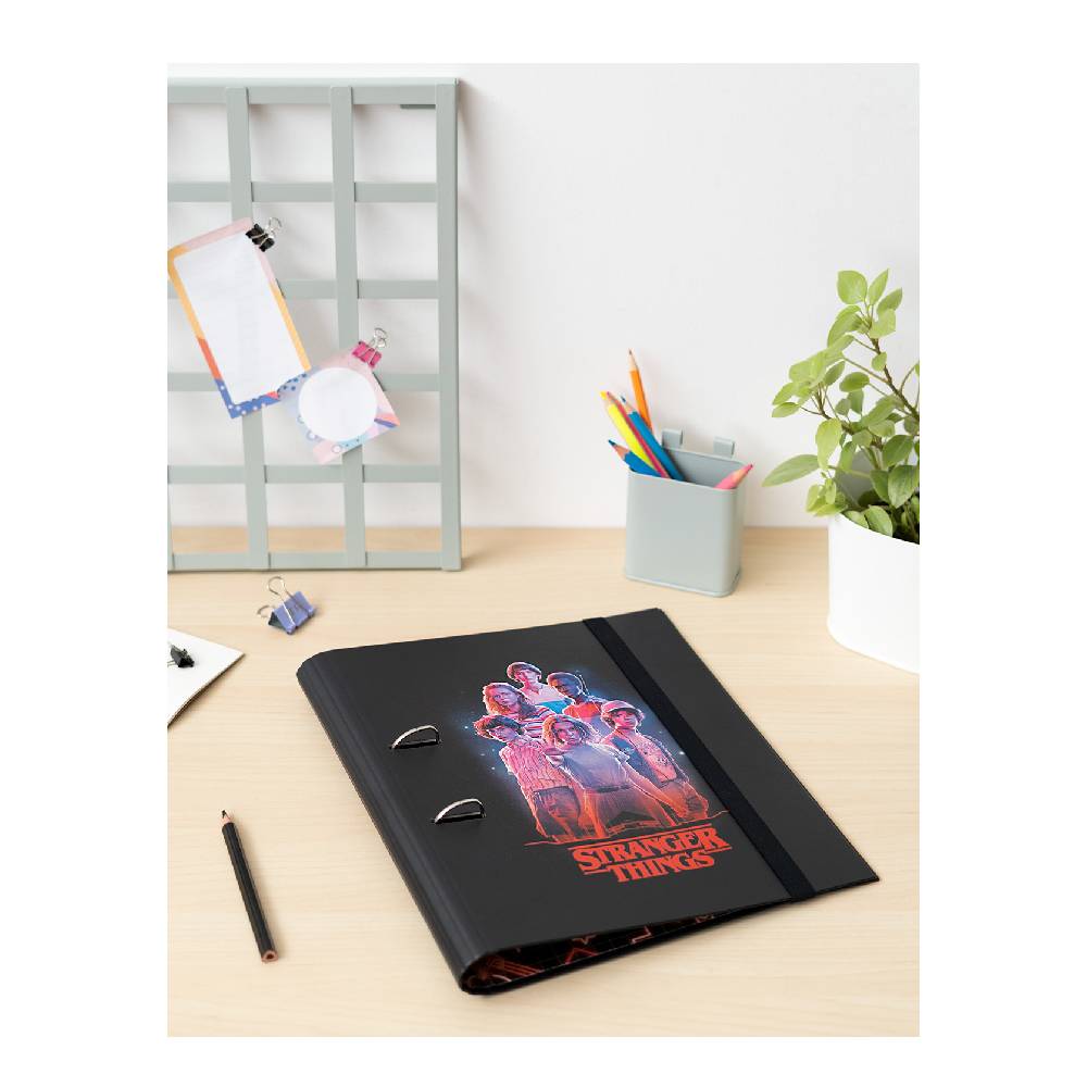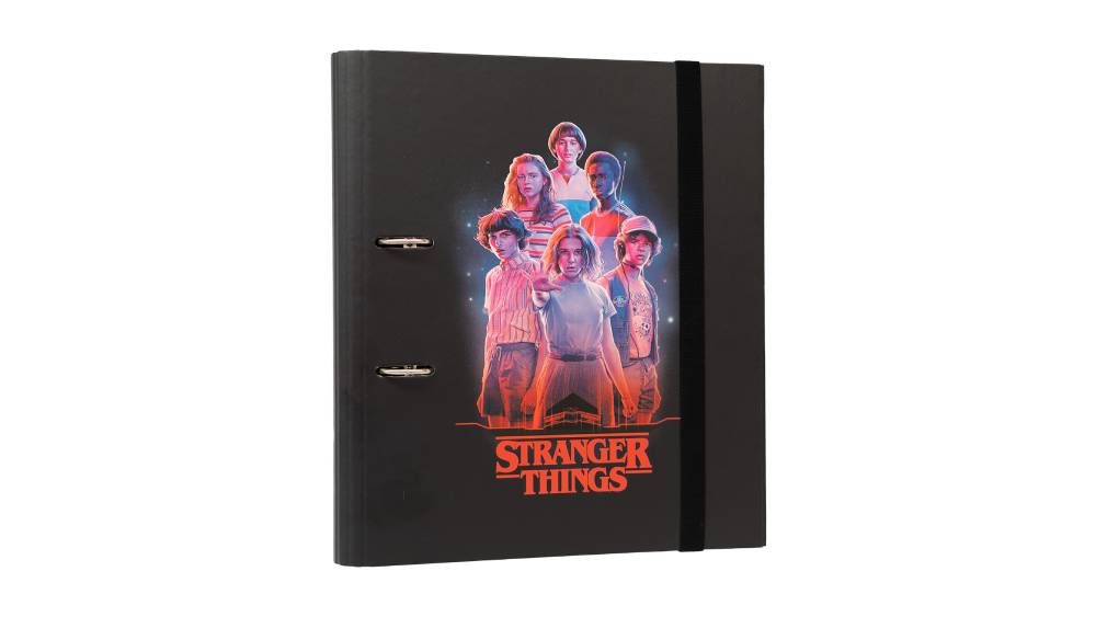 - A4-es méretű, gyűrűs kötésű mappa Stranger Things karaktereivel díszítve