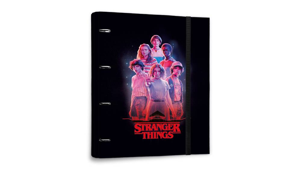 - A4-es méretű gyűrűs kötésű mappa Stranger Things karaktereivel díszítve