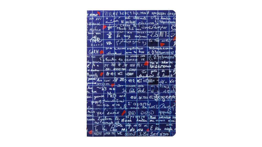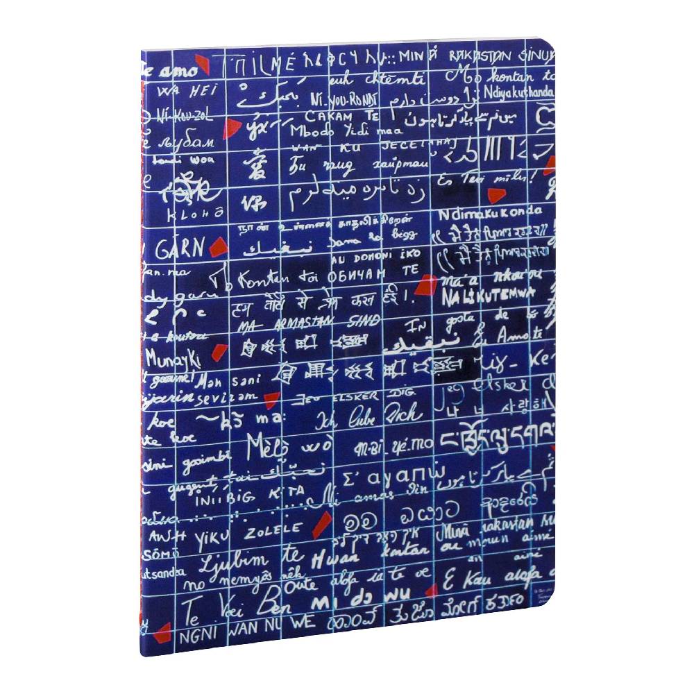 - „Le Mur des Je t'aime” A5 méretű, gerincen varrott, vonalas jegyzetfüzet