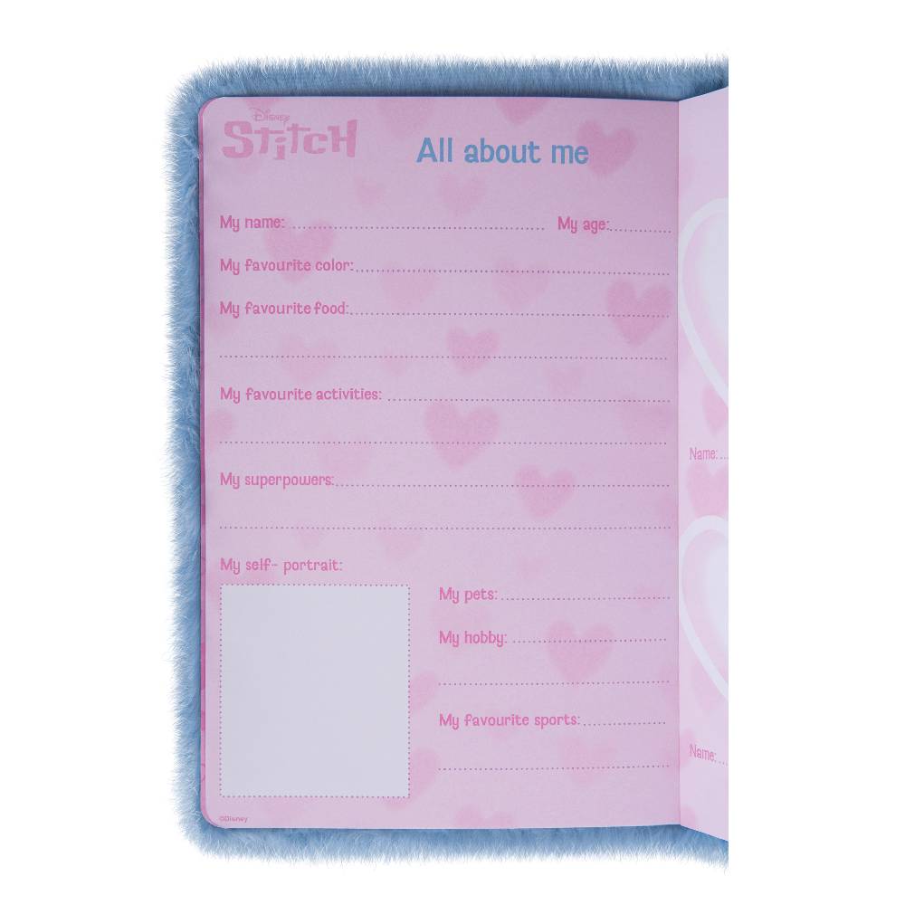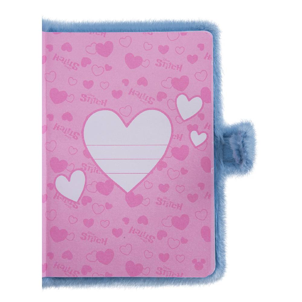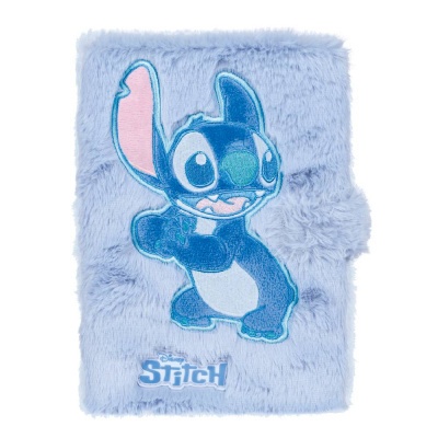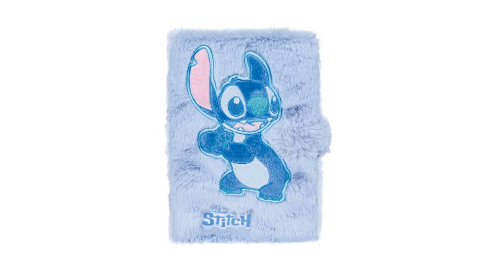 - Bájos Disney Stitch Fluffy notesz, világoskék színű, puha, plüss borítással és mágneses záródással.