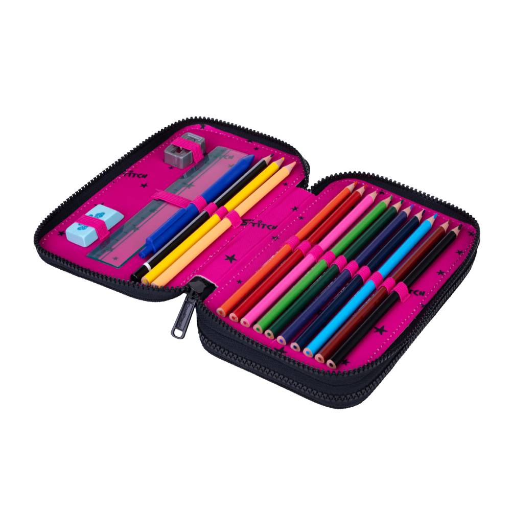 - Tartalma: 18 db filctoll, 12 db színesceruza, 1 db radír, 1 db hegyező, 1 db grafitceruza, 1 db golyóstoll, 1 db 15 cm-es vonalzó