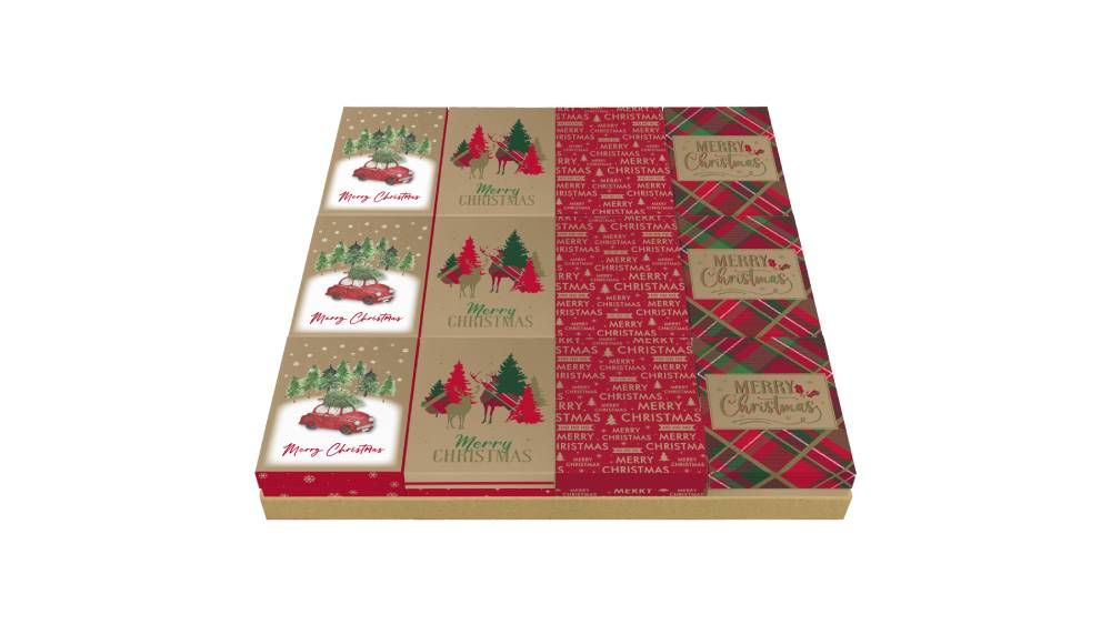 Eurowrap mini ajándékdoboz (8,5x11,5x5,8 cm) kraft, 4-féle karácsonyimintás