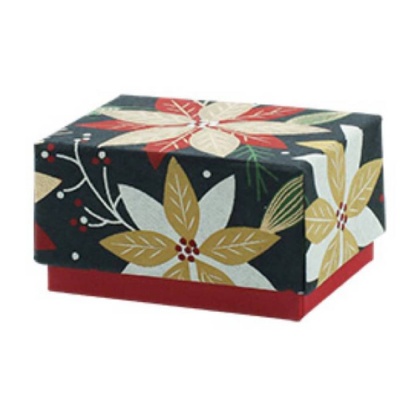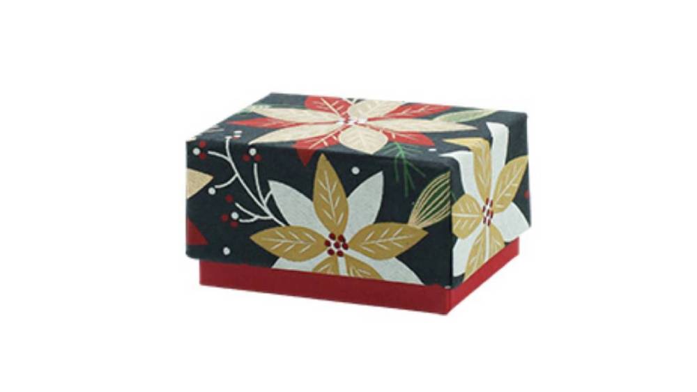 Rössler ajándékdoboz (mini, 8,7x6x5 cm) bordó, fekete, arany virágok Noel karácsonyi