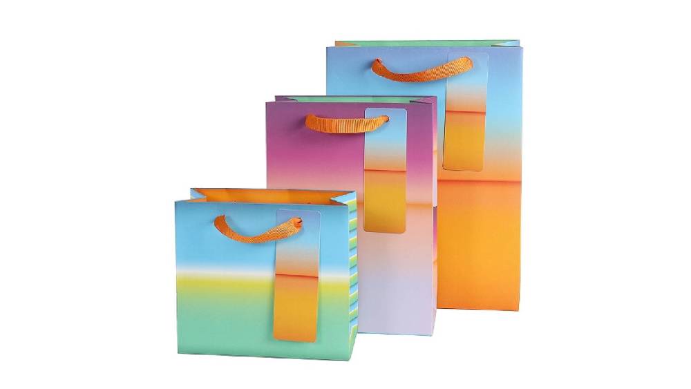 Modern, színes és stílusos – ez az ajándéktasak szett naplemente szépségét hozza el az ajándékcsomagolásba.