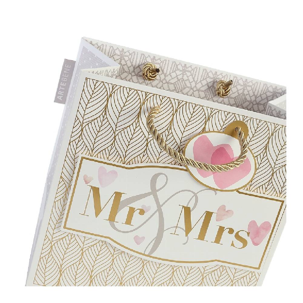 Artebene ajándéktasak (20x20x11 cm), arany levélmintás, Mr & Mrs