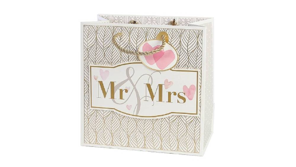 Finom arany dizájnjával, mintáival és a „Mr & Mrs” felirattal minden ajándéknak stílusos megjelenést kölcsönöz.
