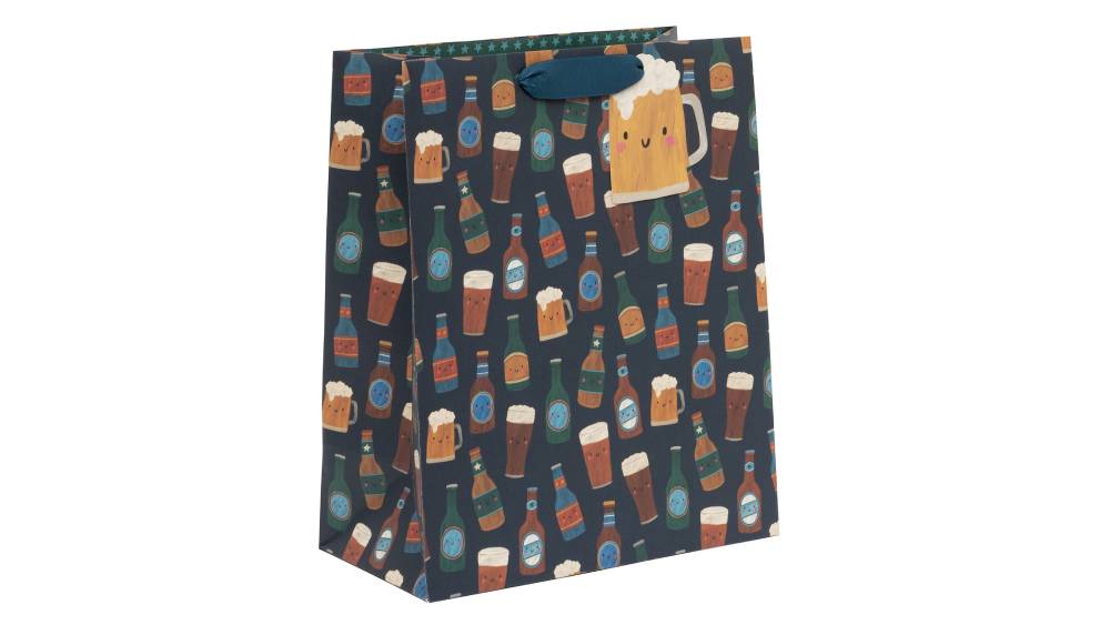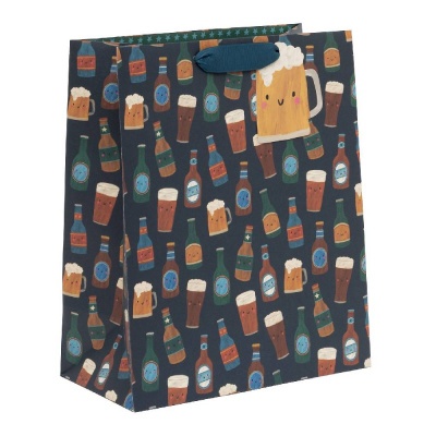 - BSB ajándéktasak vidám, sörös mintával, palackokkal és korsókkal díszítve