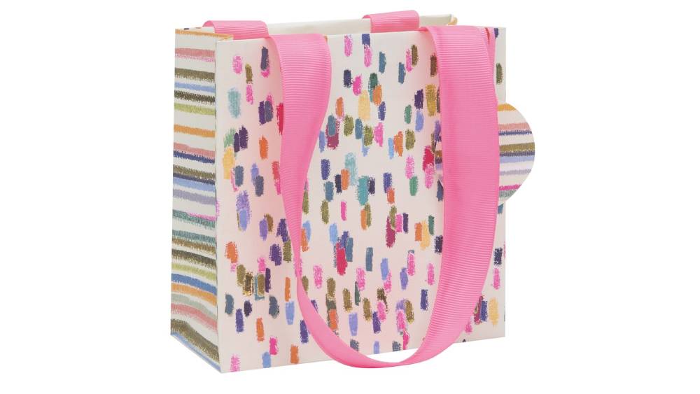 - BSB ajándéktasak színes, festékfolt mintával, amely vidám és játékos megjelenést kölcsönöz