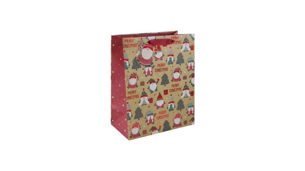 Eurowrap ajándéktasak (21,5x25x10 cm) kraft, karácsonyi manók karácsonyi