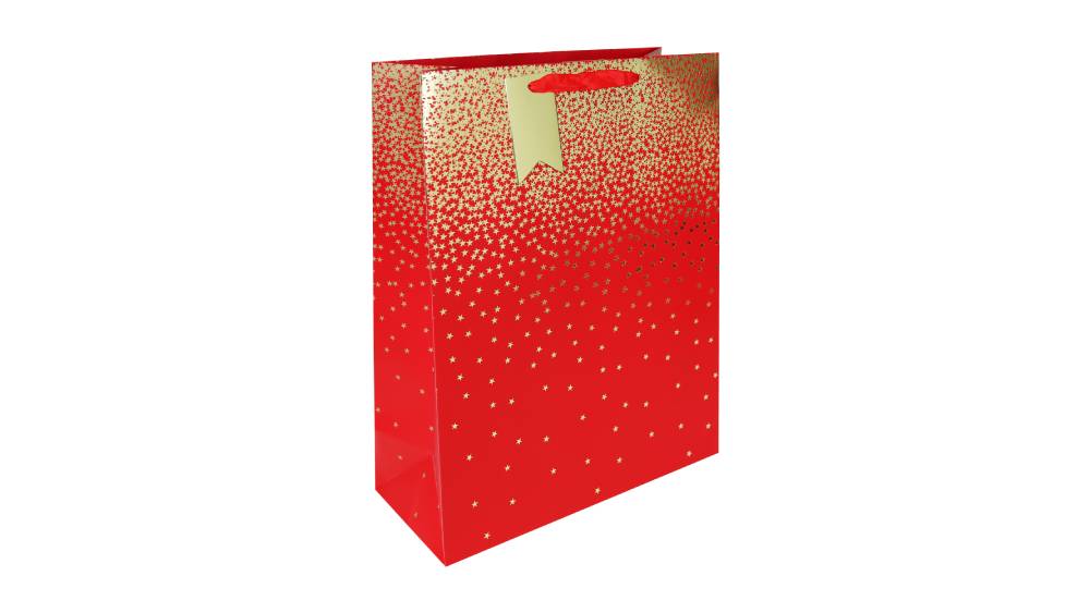 Eurowrap ajándéktasak (26,5x33x14 cm) piros, arany ombre, csillagos
