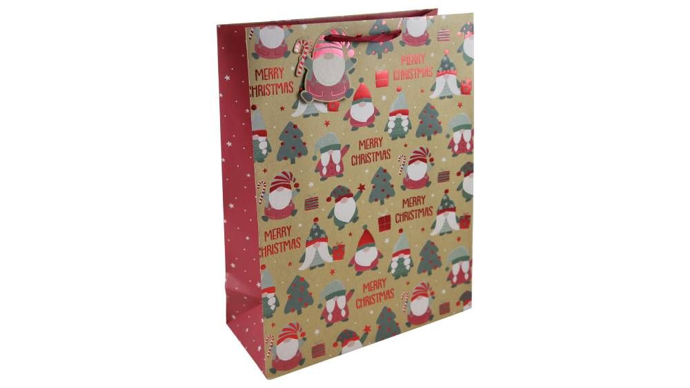 Eurowrap ajándéktasak (33x45,5x15 cm) kraft, karácsonyi manók karácsonyi