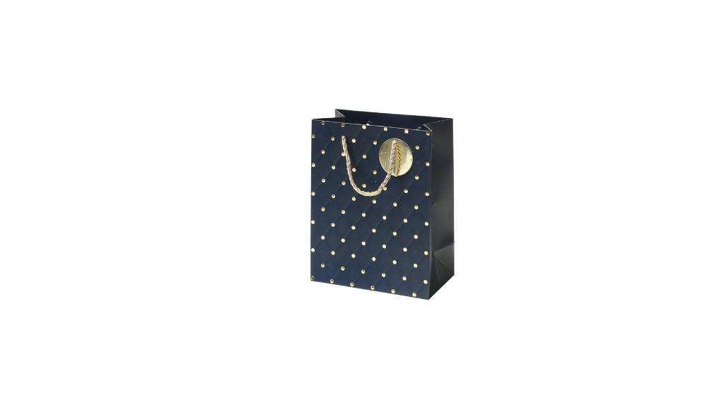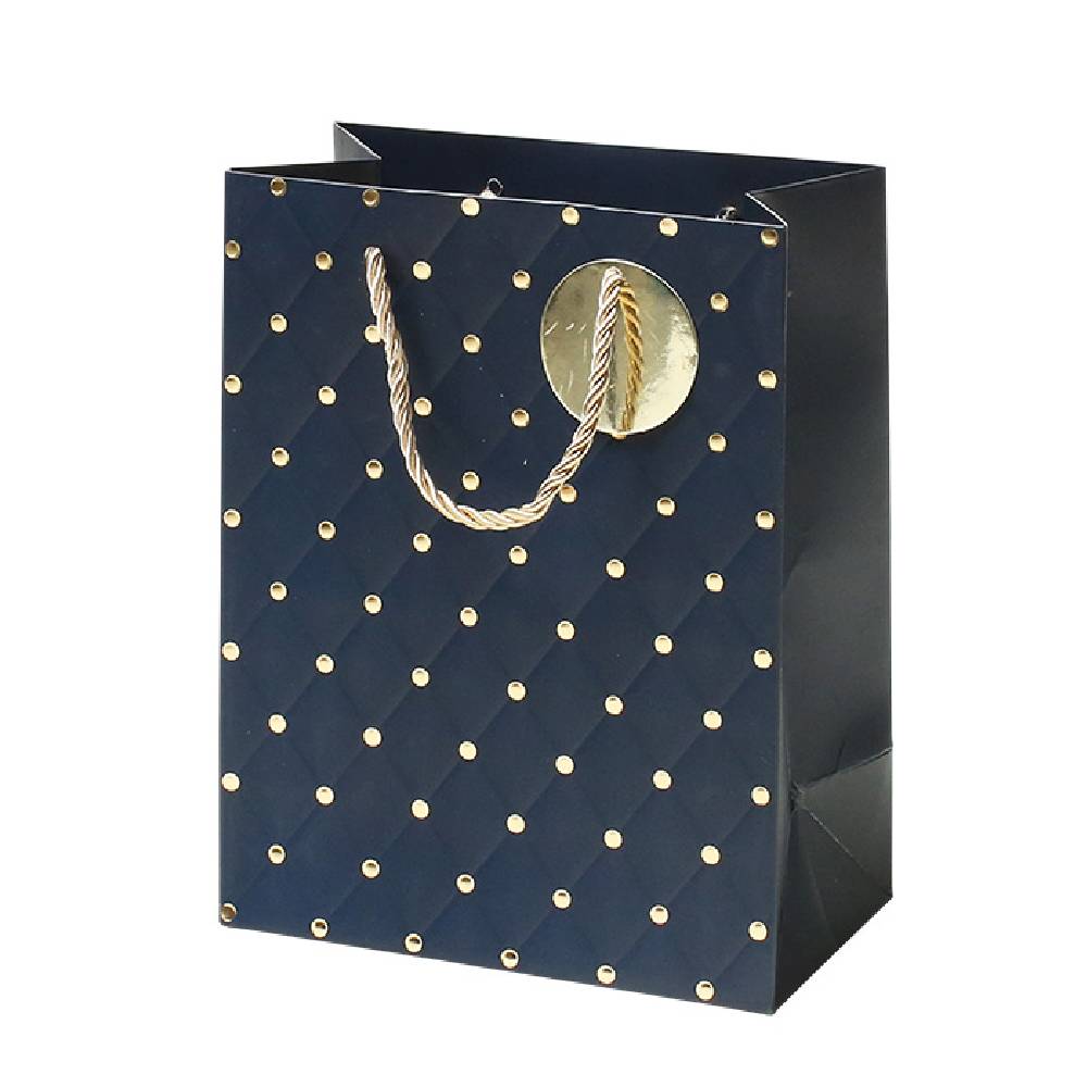 - Ajándéktasak elegáns, sötétkék-arany színű, pöttyös mintával