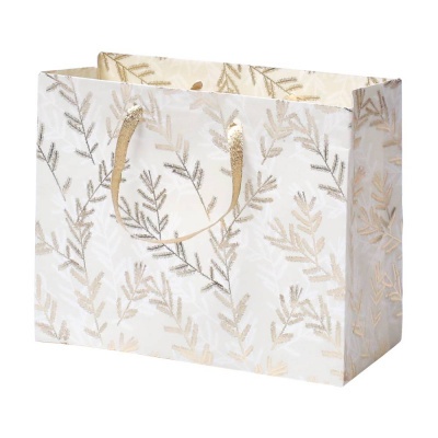 Rössler ajándéktasak (23x18x10 cm) bézs, arany fenyőágas Golden Glow karácsonyi