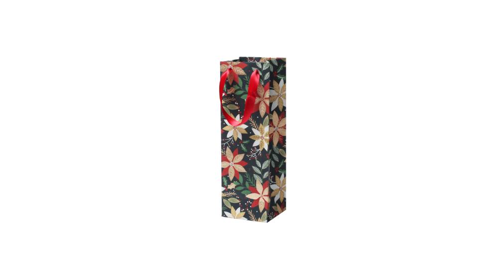 Rössler italtasak (35x11,5x9,5cm) fekete, arany virágok Noel karácsonyi