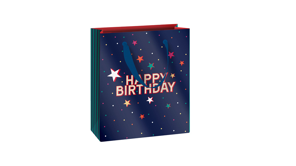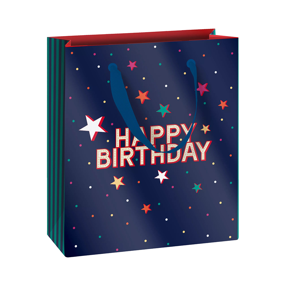 Stewo ajándéktasak, 18x8x21 cm, sötétkék, csillagos, Happy Birthday, Starlett