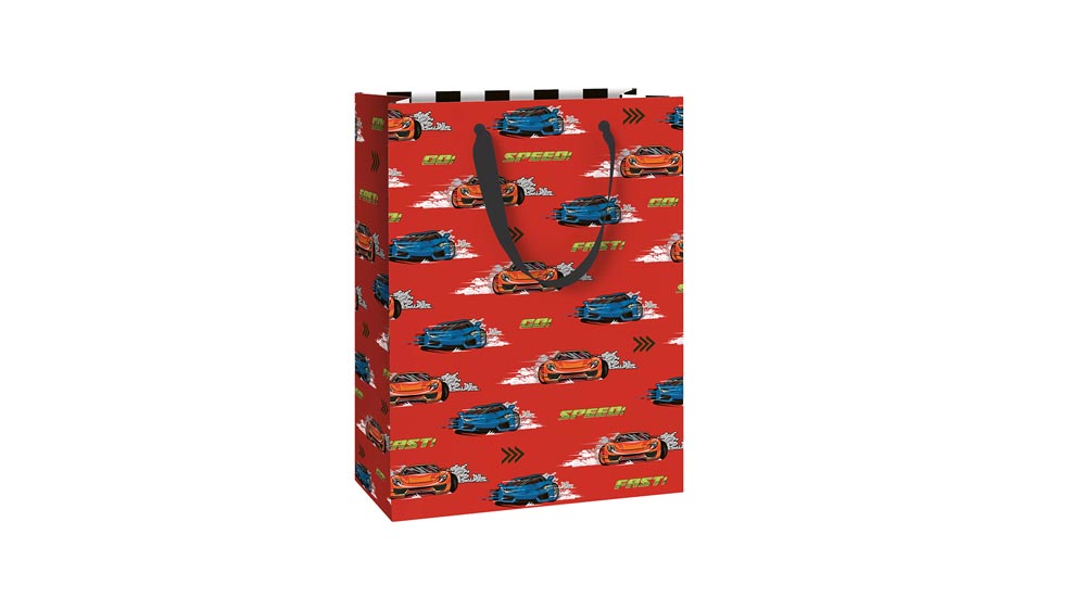 Stewo ajándéktasak, 23x13x30 cm, piros, versenyautós, Schorsch