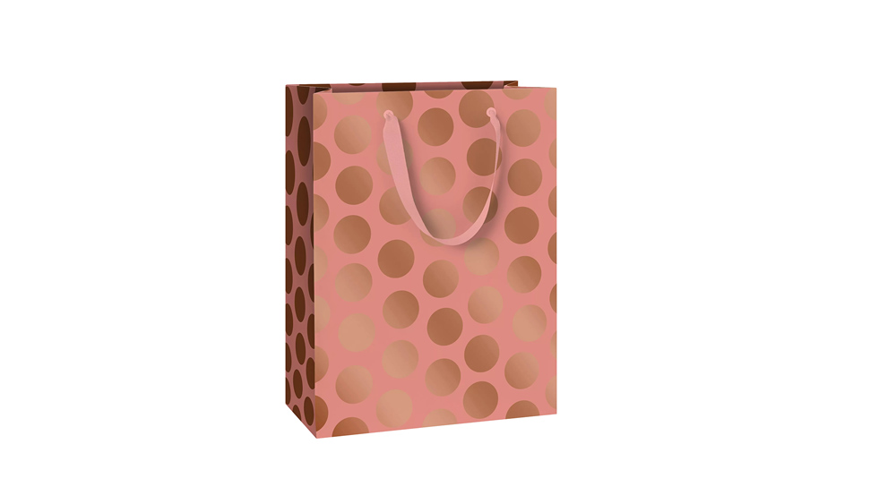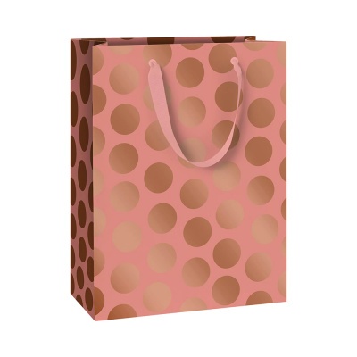 Stewo ajándéktasak, 28x15x36 cm, metál rosegold, nagy pöttyös, Vanda
