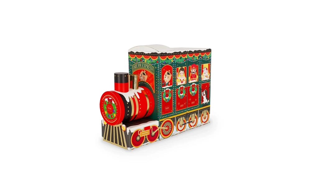 A régi lemezjátékok stílusában készült kis kartonpapír expressz 24 napon át robog a várva várt ünnep és a karácsonyéj felé!