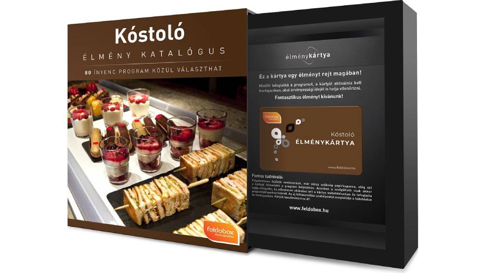 A Feldobox Kóstoló egy eredeti élménycsomag, mellyel 70 gourmet program közül választhatsz.