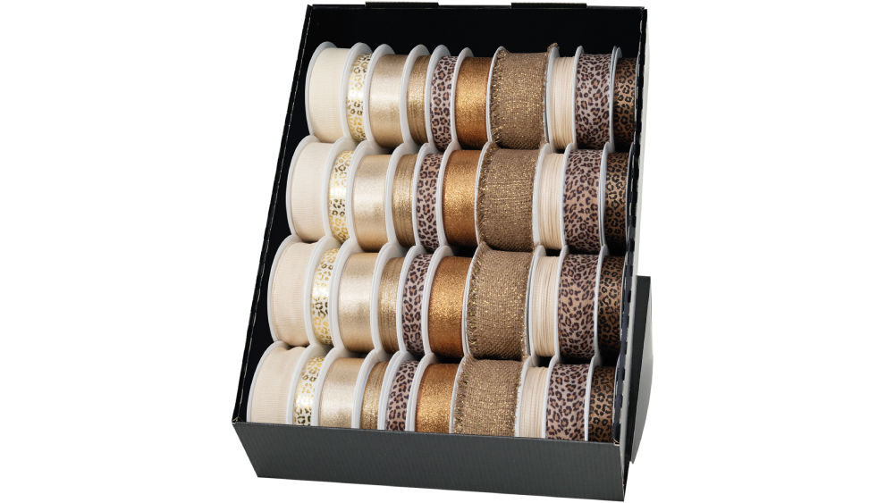 Goldina szalag, arany, ocelotmintás, 10-féle