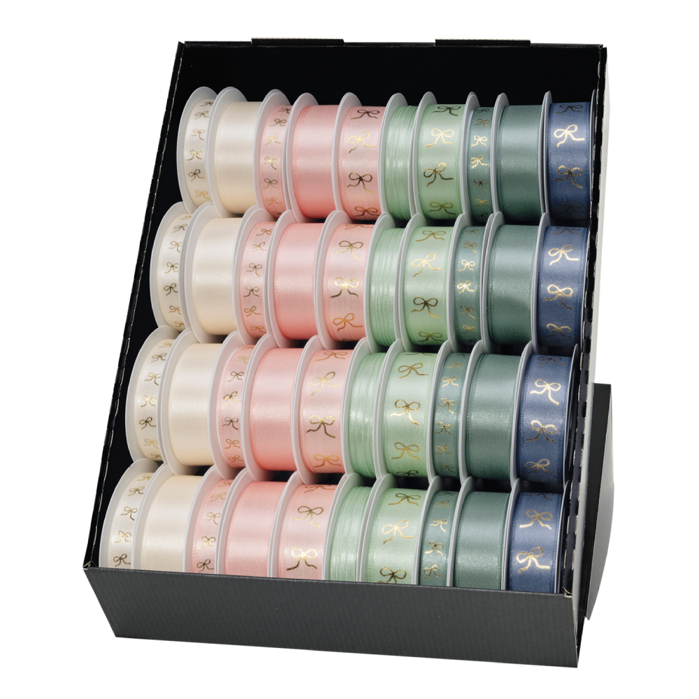 Goldina szalag, pasztell színek, arany masni mintával, 10-féle