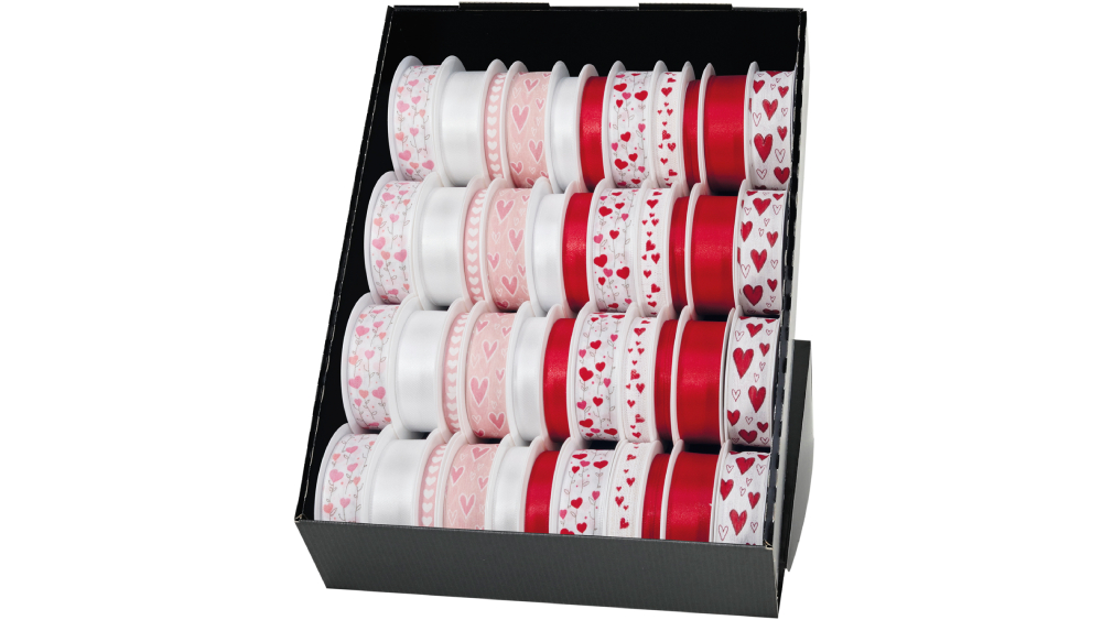 Goldina szalag, piros, fehér, szivecskés, 11-féle
