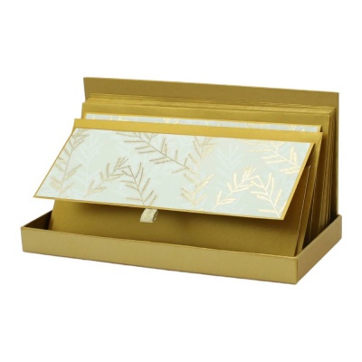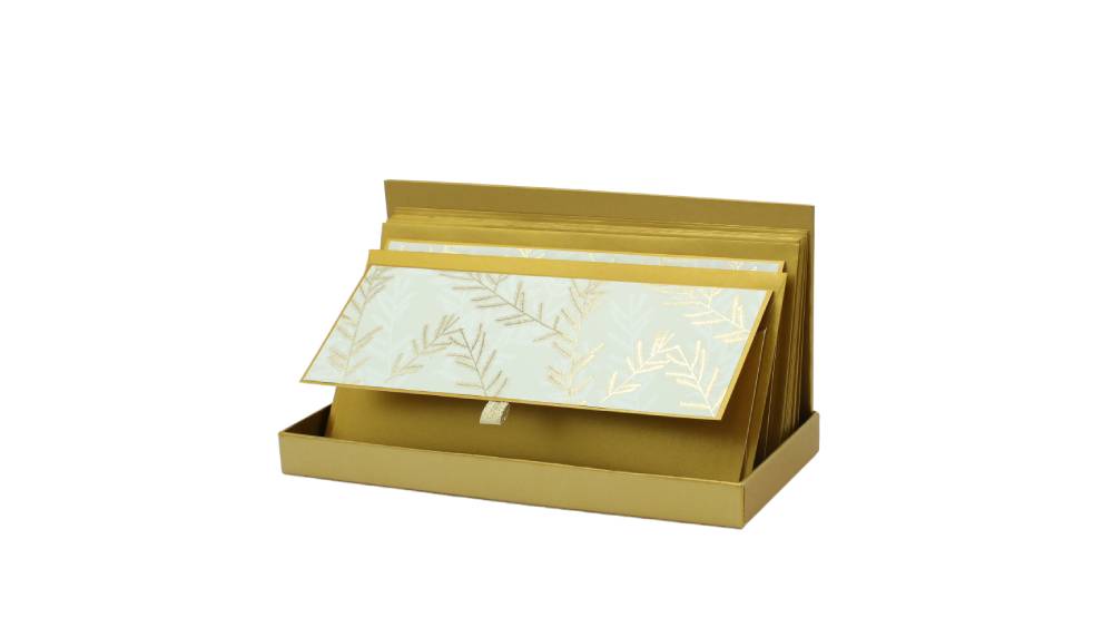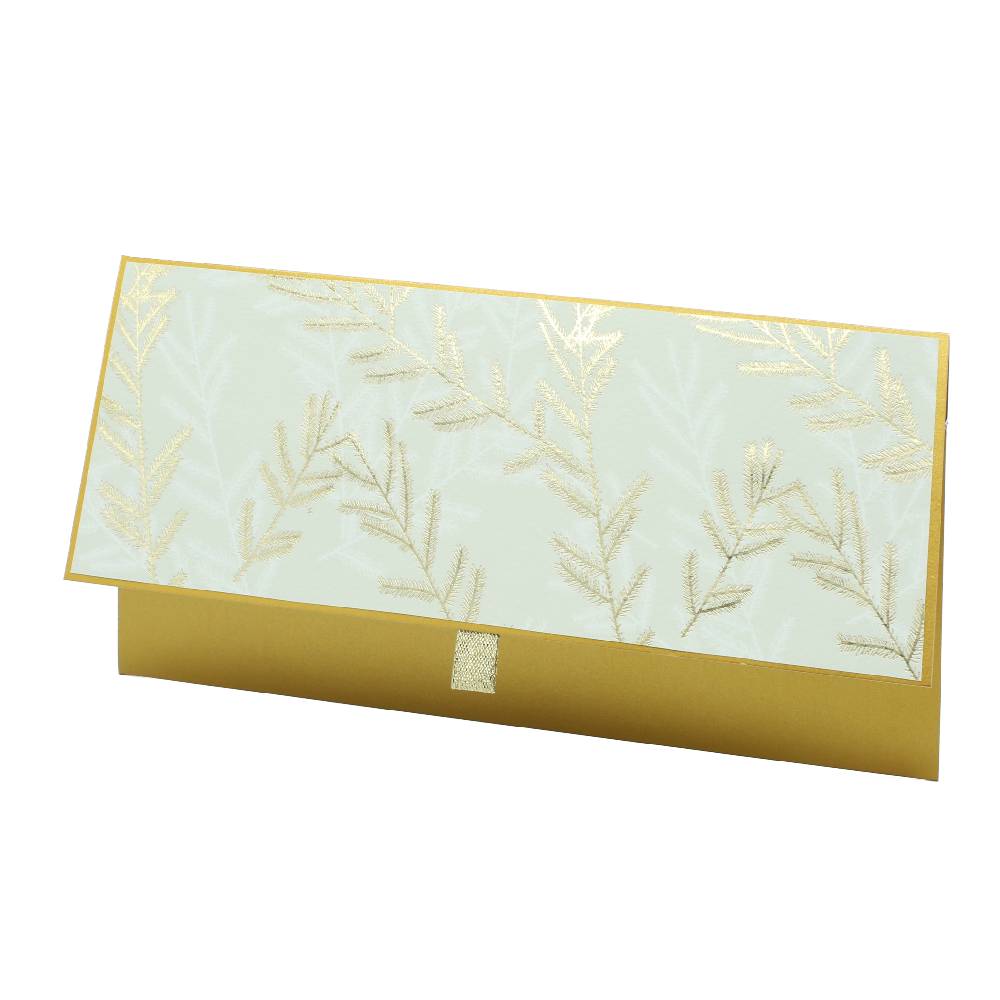- Golden Glow aranyfényű ajándékutalvány tartó, elegáns, bézs, arany fenyőágas mintával