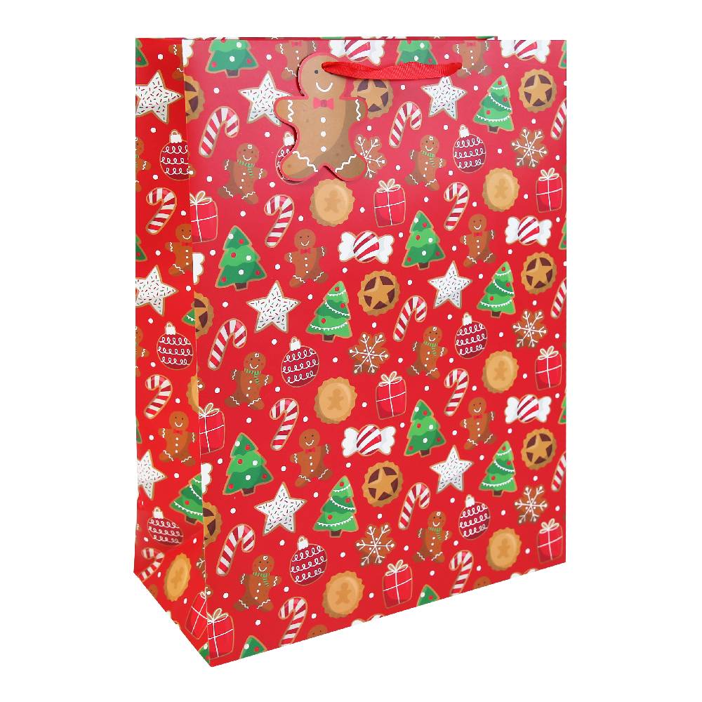 Eurowrap ajándéktasak (33x45,5x15 cm) piros, mézeskalácsos