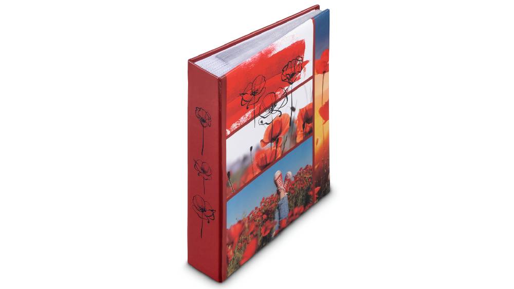 - Piros alapon pipacsos tájképekkel díszített fotóalbum
