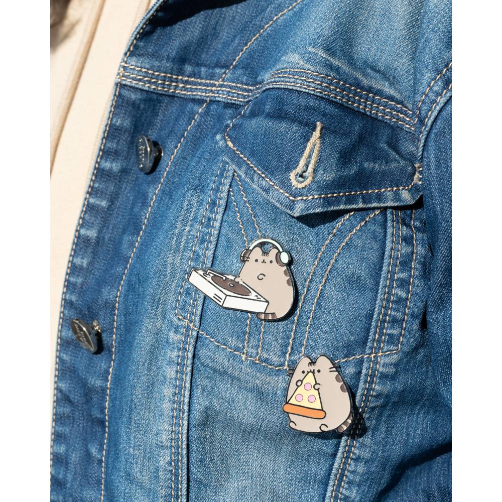 - Ez a Pusheen kitűzőkészlet 4 különböző mintájú kitűzőt tartalmaz, amelyek a kawaii cicát különböző változatokban ábrázolják: egy dobozban, pizzát evő, DJ-ként és szerelemmel körülvéve egy rózsaszín szívben