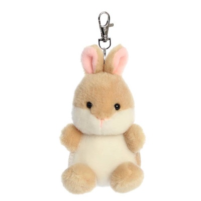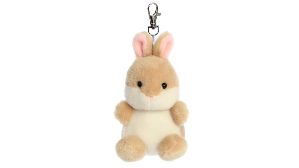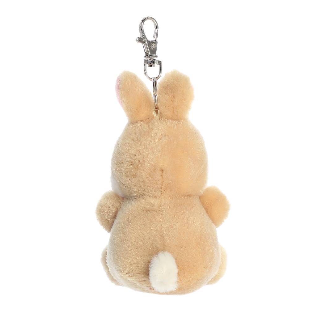 A bájos, barna-fehér nyuszi plüss kulcstartó tökéletes kulcsokra, hátizsákra vagy táskára.