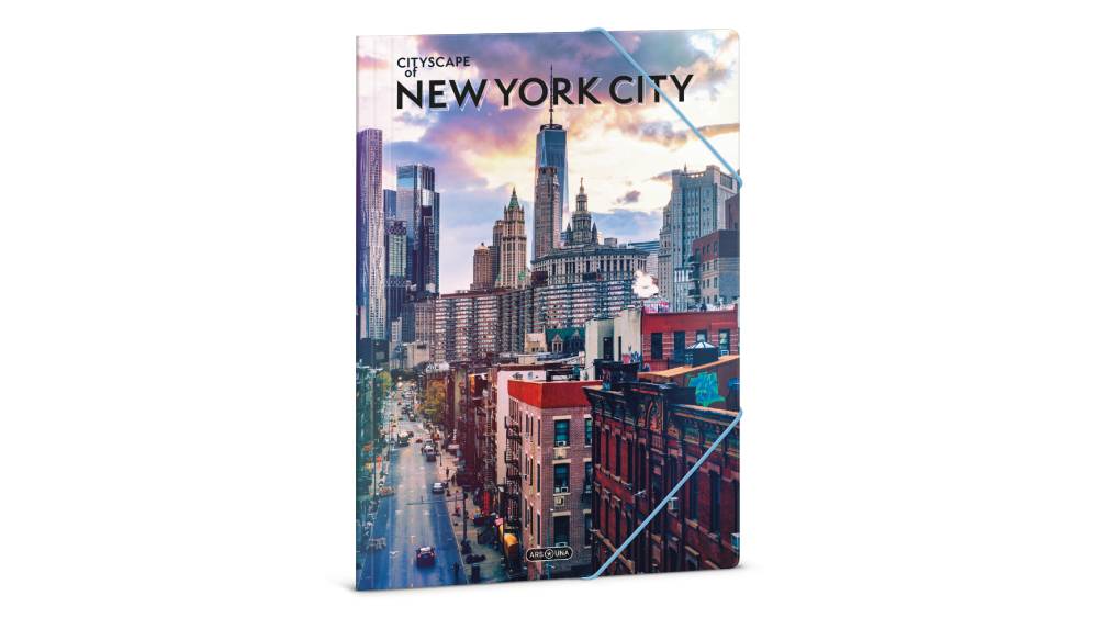 - Cityscape A/4 méretű gumis dosszié borítóján New York városképpel iratok, füzetek tárolására