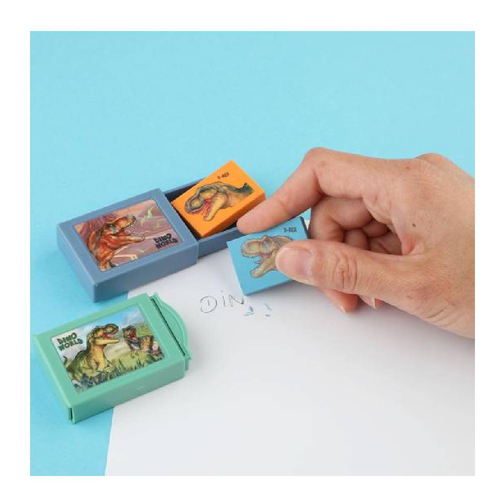 - De ha egy kicsit feljebb nyomod a bal oldali panelt, hirtelen egy színes, dinoszaurusz motívumos radír jelenik meg a dobozban
