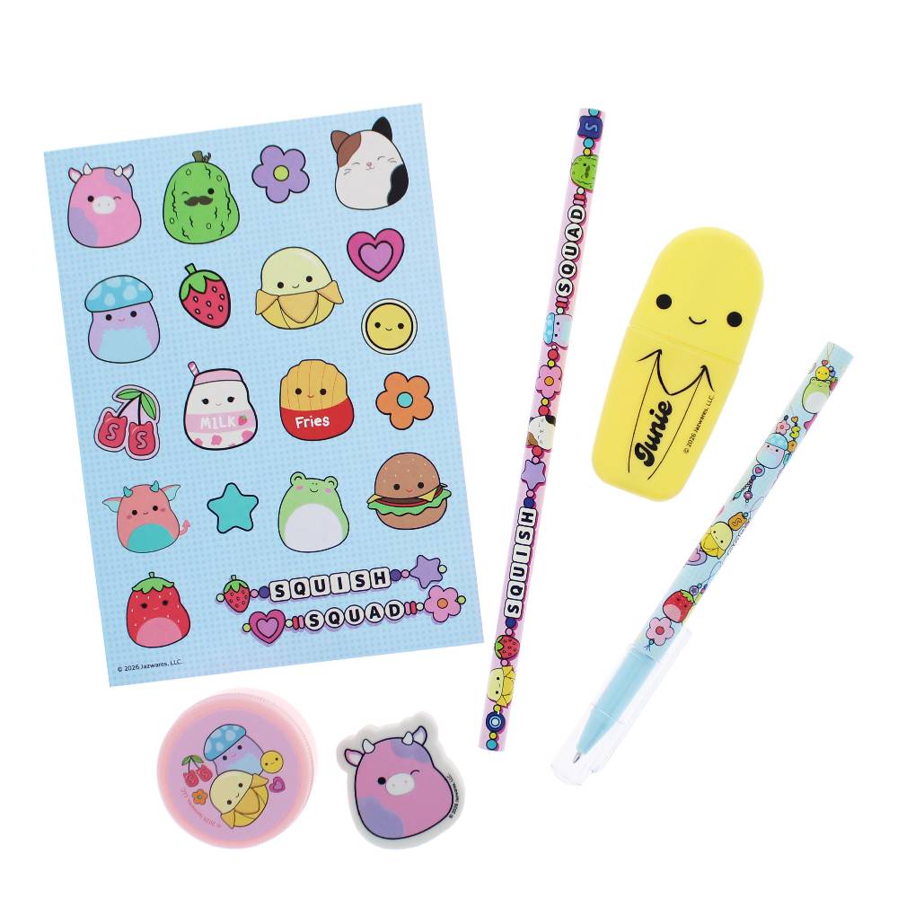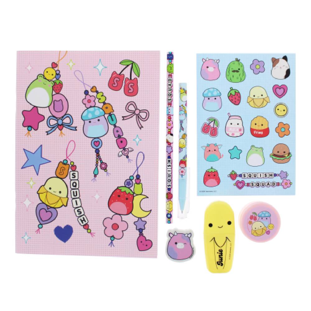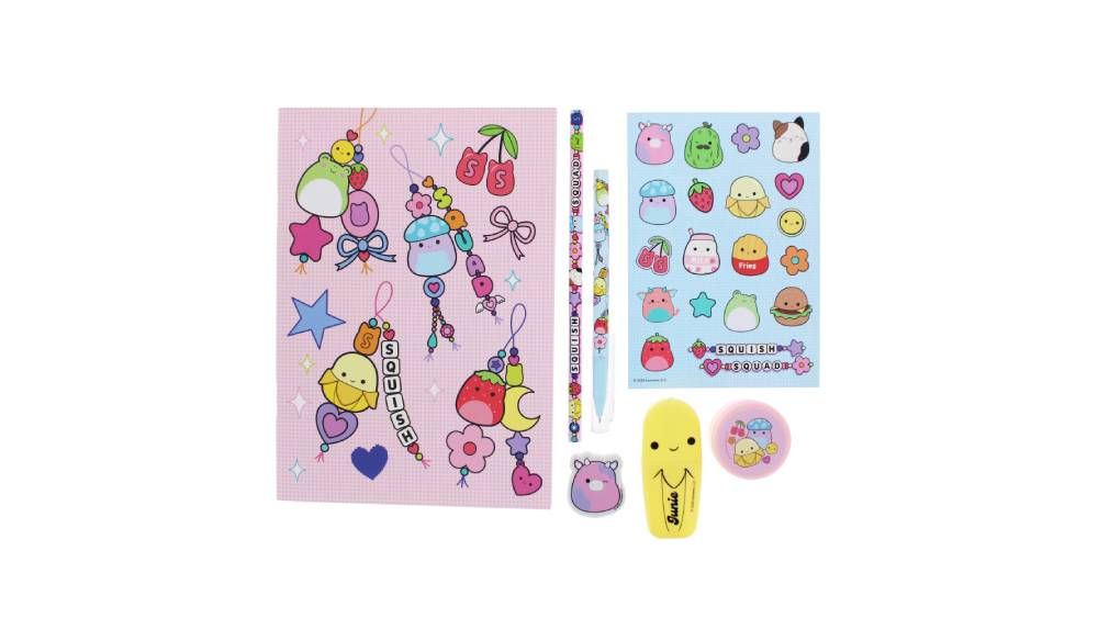 - Ez az imádnivaló írószerkészlet, amelyen kedvenc Squishmallows karaktereid szerepelnek, mindent tartalmaz, amire szükséged lehet az iskolában vagy otthon