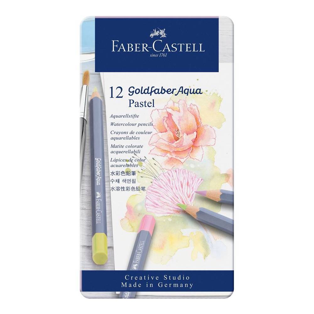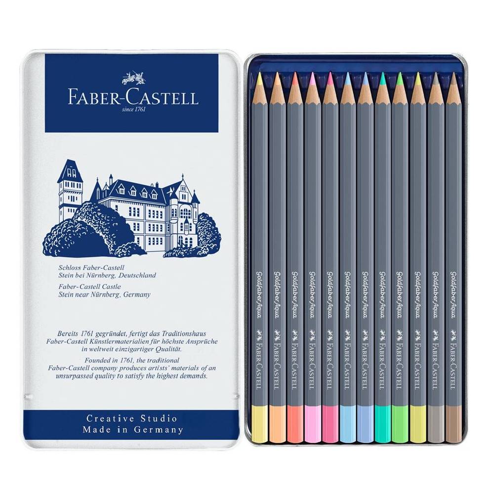 Faber-Castell Art & Graphic Színesceruza aquarell készlet 12db-os GOLDFABER Aqua pasztell színek fém dobozban