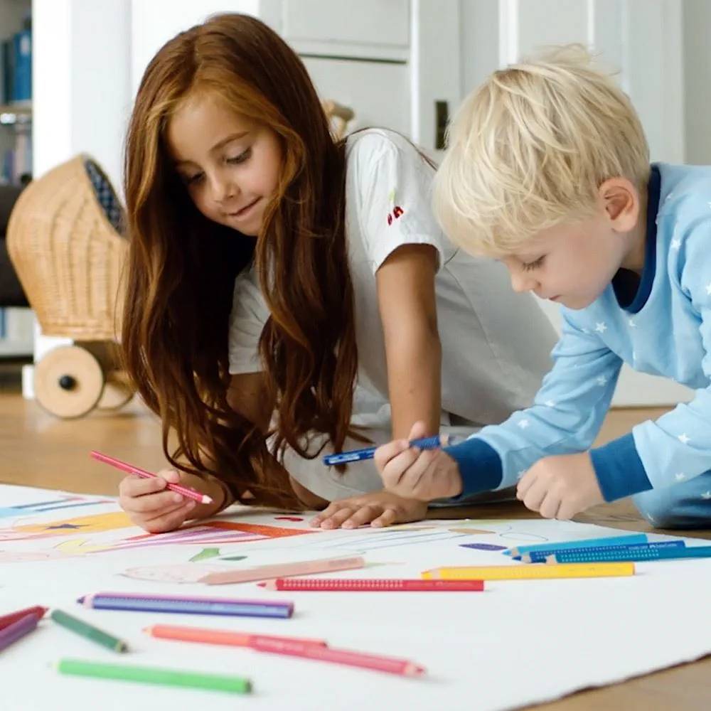 - A vastag, háromszög alakú testű színes ceruzák úgy lettek kialakítva, hogy tökéletesen illeszkedjenek a kis kezekbe