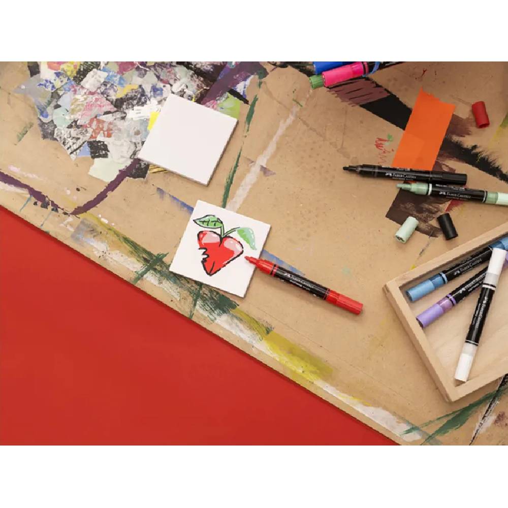 - „Kettő az egyben” akril marker két különböző méretű kerek heggyel a vékony és vastag jelölésekhez, határtalan sokoldalúságot kínálva a precíz részletekhez vagy gyorsan, a nagyobb felületekhez