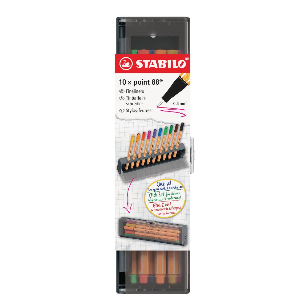 - STABILO point 88 tűfilc – 10 db-os click set – asztali készlet & tolltartó egyben
