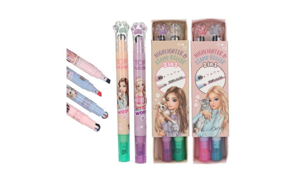 - A TOPModel kétvégű kétfunkciós tollai egy különleges tollszetben, amelyben a szövegkiemelő és a bélyegzőhenger találkozik