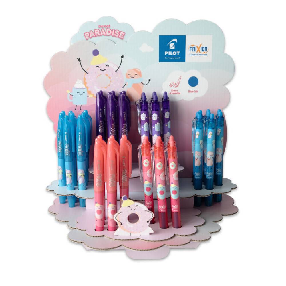A Pilot limitált kiadású Sweet Paradise Frixion Ball vidám, színes motívumokkal díszített tollaival könnyű az írás.