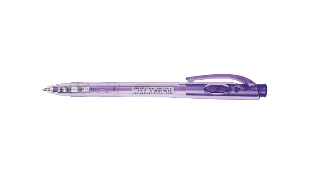 - Átlátszó testű, egyedi formájú nyomógombos golyóstoll
