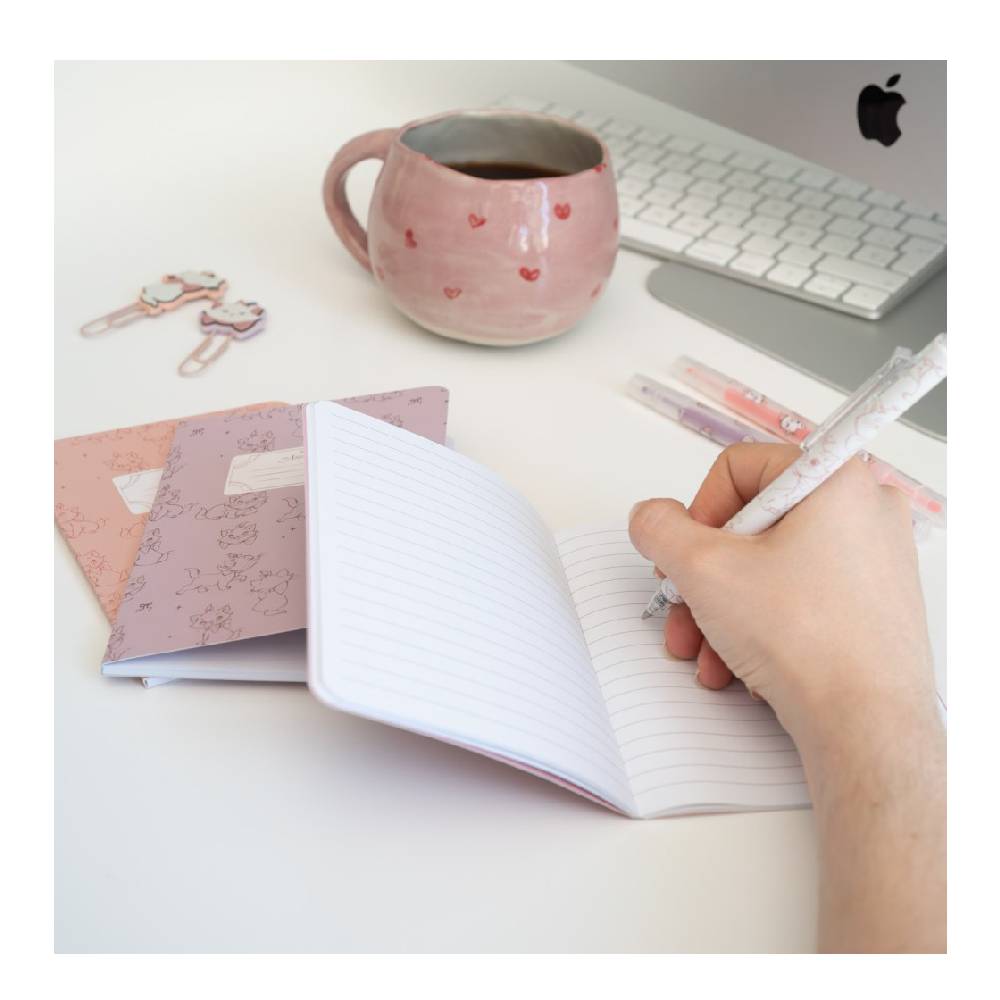 - A szett tartalmaz egy tollat és egy ceruzát egyedi formájú radírral, 3 db A6-os méretű jegyzetfüzetet, 4 db különböző színű szövegkiemelőt, 2 db szilikonos klipet, matricákat és egy csomag öntapadós jegyzettömböt